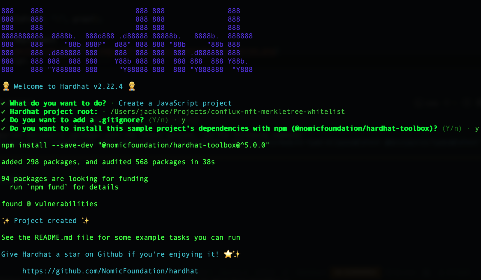 npm install @openzeppelin/contracts hardhat-conflux js-conflux-sdk keccak256 merkletreejs