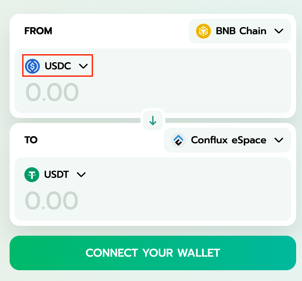 - In this guide, we'll bridge USDC on BNB Chain to USDT on Conflux eSpace through Meson.